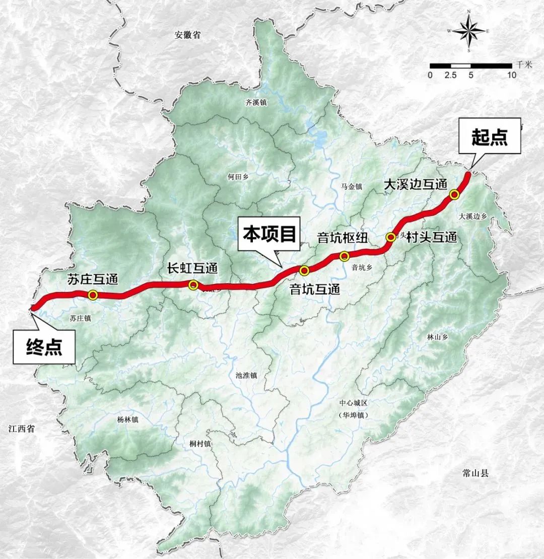 杭淳开高速公路衢州段项目途经衢州市开化县大溪边乡、村头镇、音坑乡、中村乡、池淮镇、长虹乡和苏庄镇。项目起点位于开化县大溪边乡姚家村,终点位于开化县苏庄镇界首村西南侧浙赣界处,路线全长约61.1公里,总投资约156.7亿元。