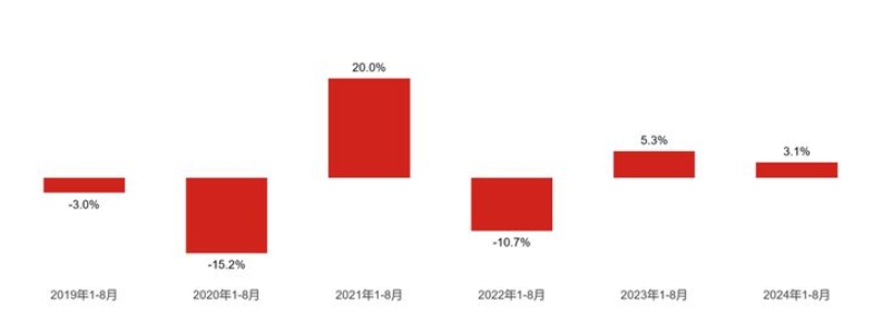 2024年1-8月中国广告市场呈现出稳步增长的态势,商服、娱乐休闲,及部分快速消费品行业广告的上扬反映着消费者需求的多样化和市场趋势的变化,同时也显示市场活力在持续提升。根据CTR媒介智讯的数据显示,2024年1-8月广告市场同比上涨3.1%。8月份的广告市场刊例花费同比上涨5.2%,自6月以来已经连续三个月实现稳定增长;月度花费环比上涨3.1%,涨幅较上月略有扩大。分广告渠道看,2024年1-8月除了电梯电视、电梯海报和影院视频广告刊例花费同比保持上涨外,其他广告渠道花费均有不同程度的缩减。从8月的月度表现看,电梯电视、电梯海报、影院视频三个渠道广告同比增长均达双位数;从环比角度看,除电视、报纸、地铁和互联网站的广告花费呈现下跌,其他广告渠道花费均有不同程度的环比增长。